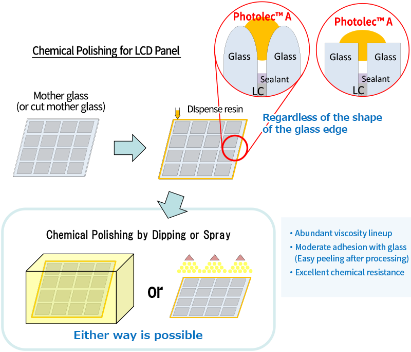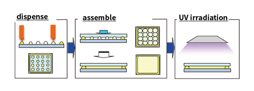 • UV照射斷面部分(側面照射會對液晶造成損傷)