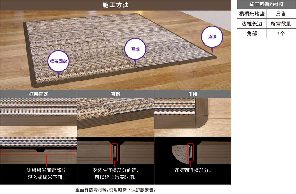 ●設(shè)置榻榻米地墊的話,防滑面上會有MIGUSASLOPE的痕跡,質(zhì)量沒有問題。