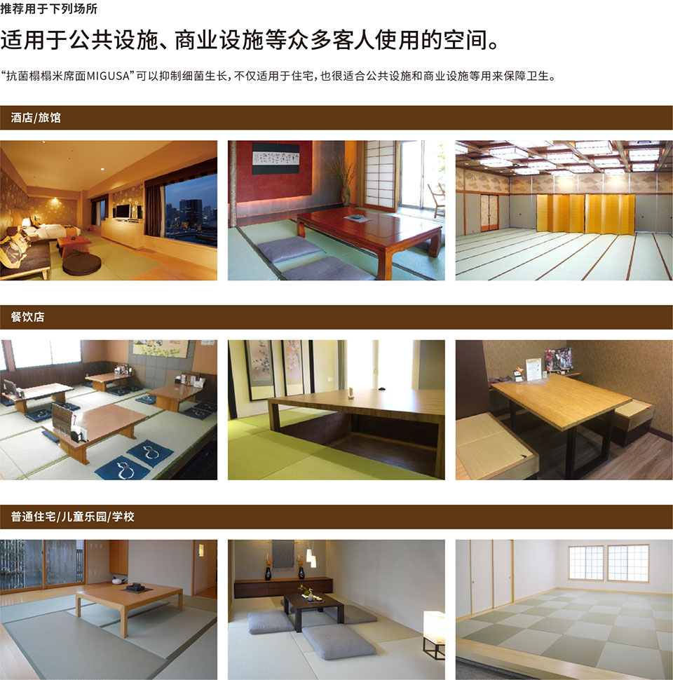 傳統(tǒng)之美。從普通家庭到酒店、旅館、餐廳和各類設(shè)施,這是廣受歡迎的榻榻米席面。